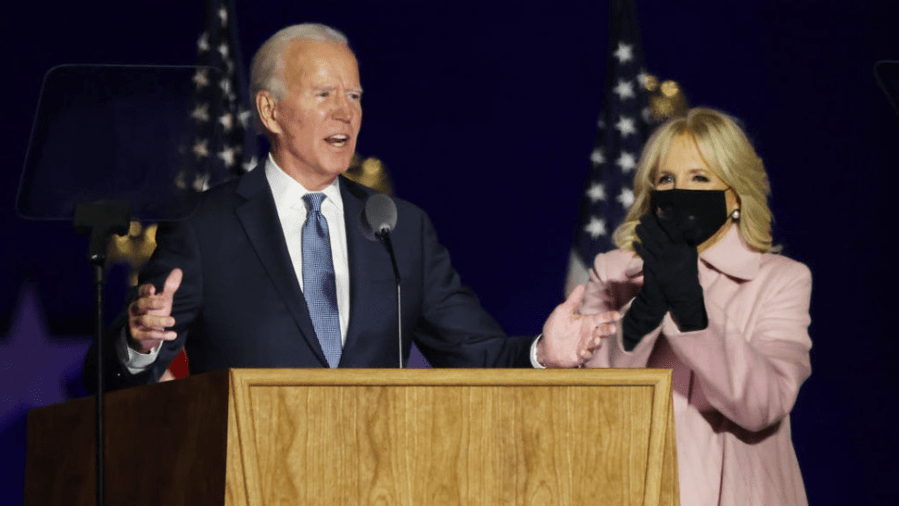 Biden, speaking from the Chase Center in Wilmington, Del., touted the “extraordinary” turnout in the 2020 race, just hours after the Fox News Decision Desk projected that the former vice president won the battleground state of Wisconsin.